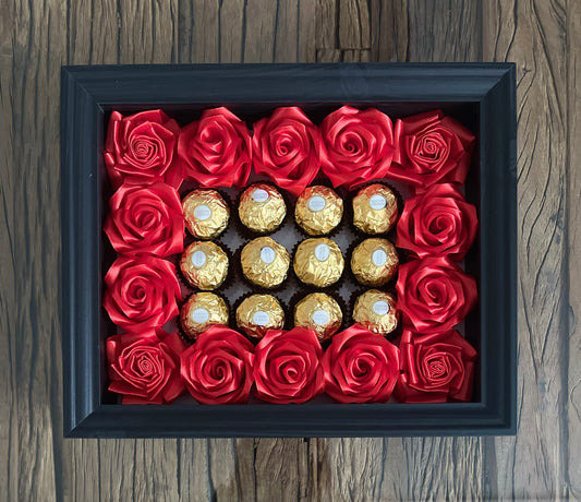 Enchanting Rose with Ferrero Rocher (Surprise Photo Frame-Black)