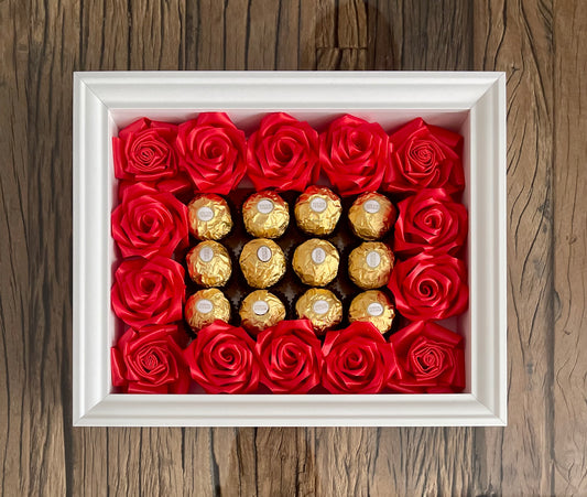 Enchanting Rose with Ferrero Rocher (Surprise Photo Frame-White)
